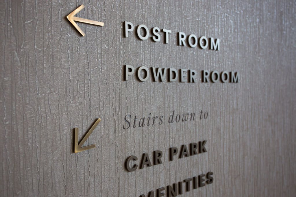 The team at Reade Signs were really easy to work with throughout and kept closely to the design intent to echo the craftsmanship and quality of the overall interior design from the outset. To match the high standards of this luxury development meant that hundreds of individual sign components had to be hand finished and polished. The internal and external wayfinding signs were manufactured and installed very efficiently, dovetailing with the main contractor’s delivery programme.