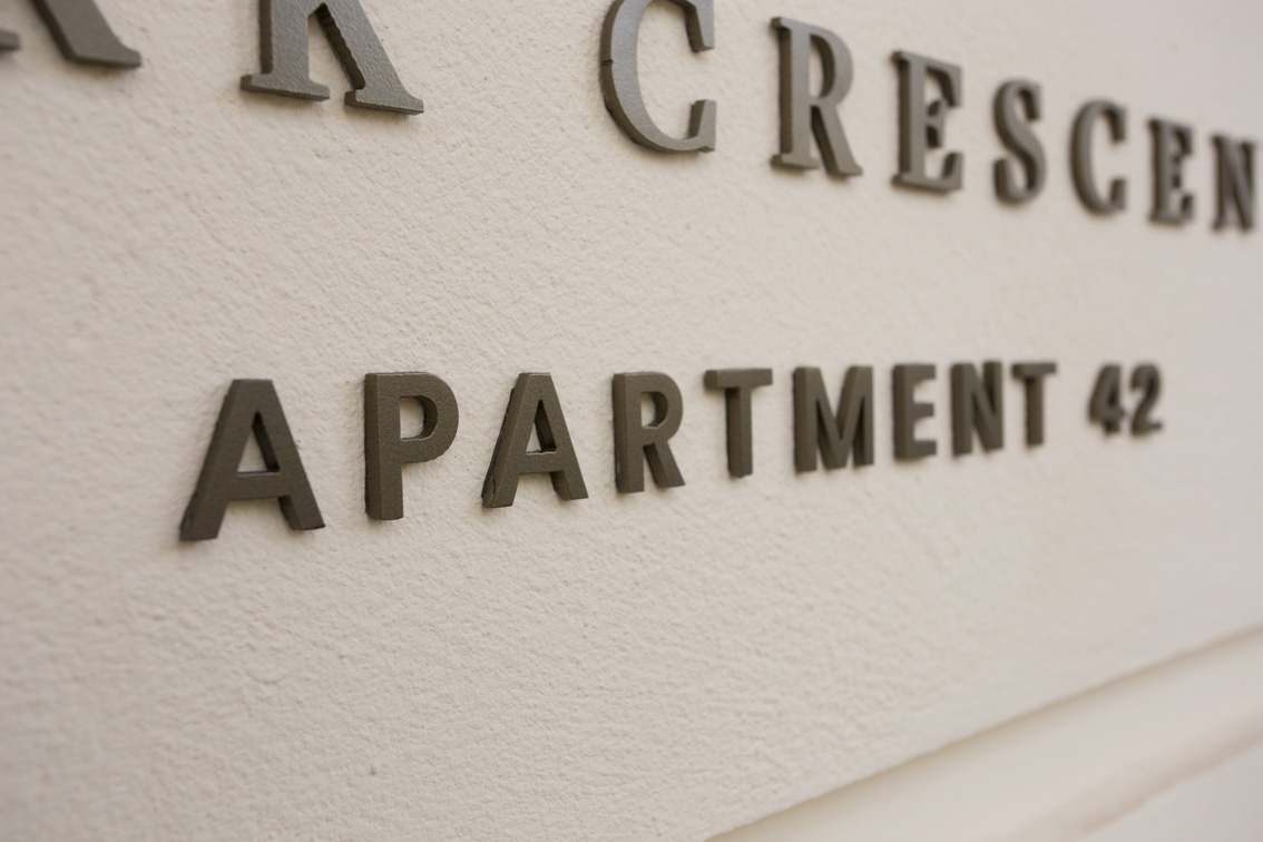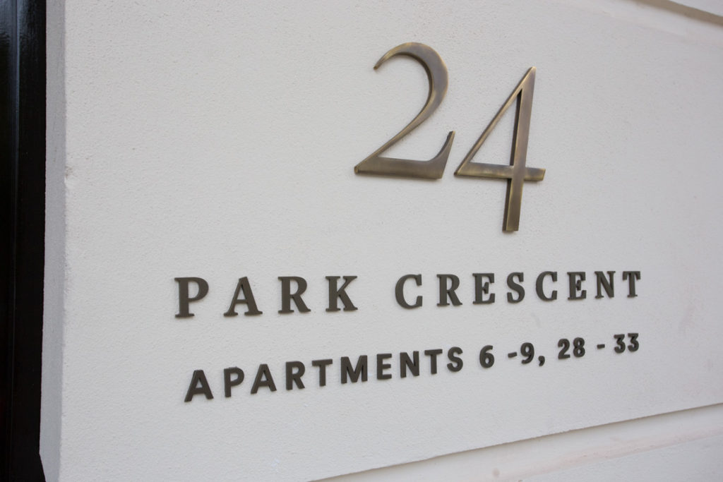 Regent’s Crescent in Marylebone was originally built in 1820 for the Prince Regent, later George IV. Designed by architect John Nash, it boasts grand proportions and a sweeping façade and is one of London’s great historical landmarks. The Grade I listed development consists of 67 apartment residences and nine garden villas, with interior design by Millier. Reade Signs won a competitive tender to manufacturer and install the internal and external wayfinding signs at Park Crescent, part of this high-end luxury development.